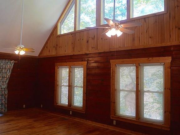 Private log cabin with 2.46 acres of terraced paths and garden areas. Great room with T&G ceilings. Main level bedroom and bath and upper master with loft style BR and full bath. Lower level has has laundry/storage, extra sleeping quarters with Murphy bed and full bath. 2 car detached garage with power and water, deck off great room, covered front porch and paved circular drive. Lots of walking paths and garden areas. Fruit trees, grape vines and gazebo. New heat pump 2017. Private end of road location!