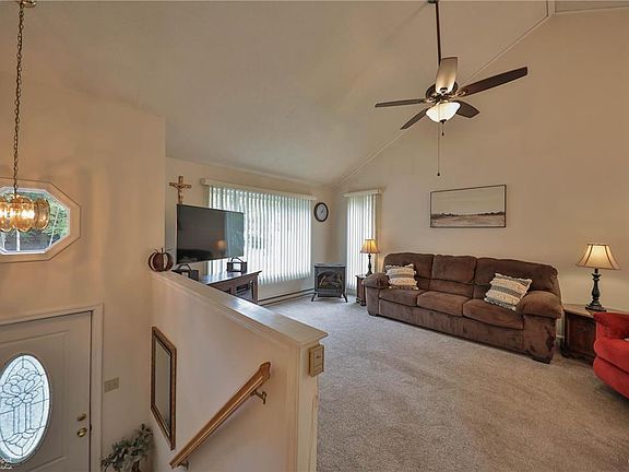 - Description: Vaulted ceilings, newer carpet, ceiling fan with light, open concept layout with dining area
