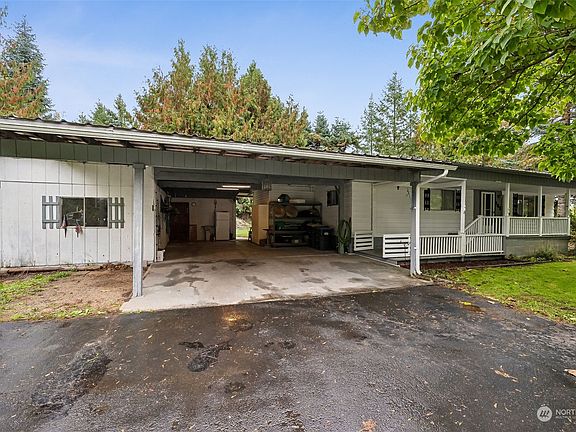 Embrace this garden & shop oasis just a stone's throw from fun Mayfield Lake! Enjoy nearly 1 acre w/fenced garden, fruit trees & Empress blooms surrounding the multi-level covered front porch. A circular paved driveway leads to covered parking for 8 cars+ space for your RV & boat. Brazilian cherry hardwoods lead to new flooring in kitchen & bdrms, plus chic midcentury swag pendants in both bathrooms. Kitchen island seating in modern kitchen next to window-filled dining & family room/office space w/wood stove & mini-split heat pump A/C. Enjoy the covered gazebo & firepit out back, plus room for projects galore in shop, carport & shed. Less than 5 mins to grocer & espresso drive-thru, this home combines comfort, charm & fun! Financing Avail!