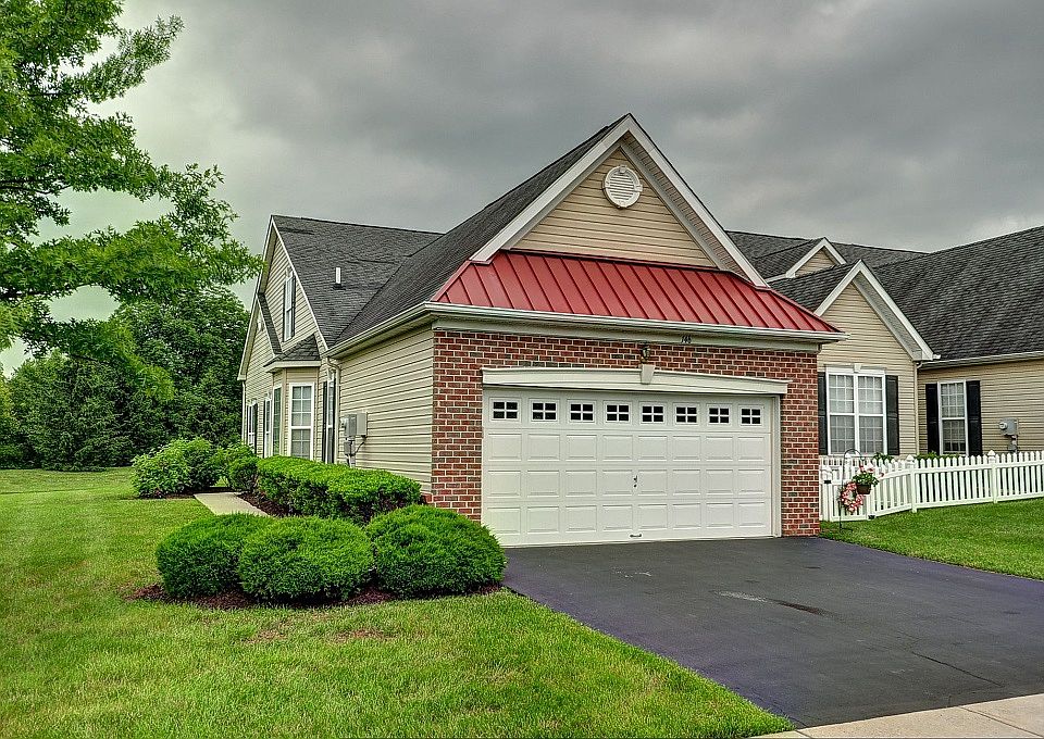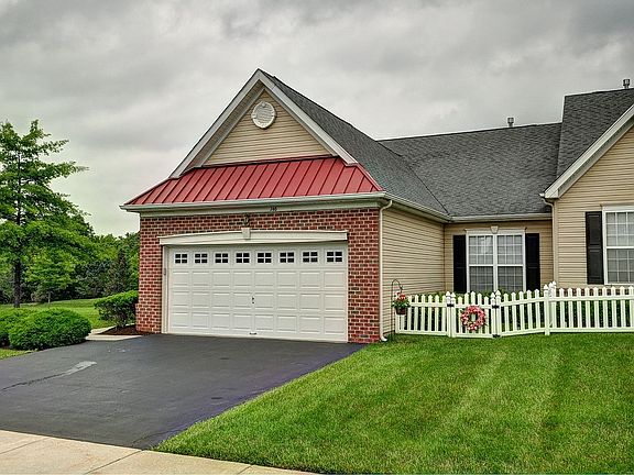Superior end-unit townhome with 2-car garage in the very desirable 55+ community of Village at Dorchester. This home is ideally situated in the community backing to the walking trail and woods. The house has been meticulously kept and offers a warm neutral d~cor, abundant windows, and great natural light. The eat-in kitchen has 42" cherry cabinets, gas cooking, built-in microwave and a breakfast area. The adjacent laundry room offers an incredibly spacious walk-in pantry. The dining room and living room combine to a large and elegant open area with a glass door to a rear patio. Chair rails and crown moulding adorn both rooms and the living room has a vaulted ceiling. The master bedroom has a vaulted tray ceiling, a well-appointed master bath with dual vanity, very large walk in closet, and an additional closet. The main floor also offers another bedroom and an updated full hall bath. The 2nd level is finished into a very spacious loft area that easily functions a bedroom for overnight guests and includes its own full bathroom. A large storage area completes the upper level. The community offers walking trails and a great clubhouse with exercise room, meeting/community rooms, full culinary kitchen, bocce and shuffleboard. Worry-free living with the community taking care of lawn, snow, and trash. Easy access to commuter routes, parks, recreation, and nearby Sellersville Borough featuring the Sellersville Theater and Washington House. Move in ready! A must see!