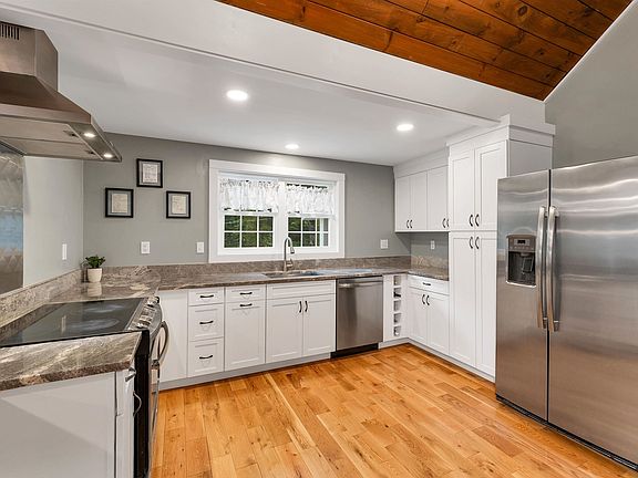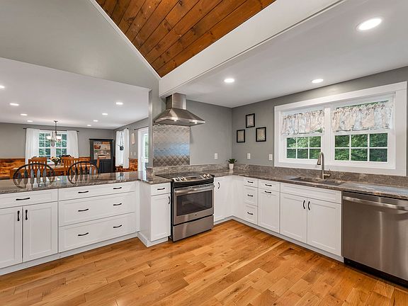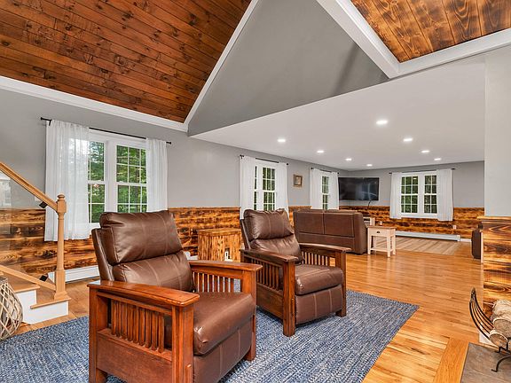 Wait until you see this completely updated custom built Chalet located in highly desirable Candia, NH! This house was completely updated in 2020 with all new insulation, drywall and wood walls, new 33x26 two story addition added, new roof, siding and windows. The flow of the house is amazing. Once you walk into the foyer, the house opens up to the kitchen/dining/living area with a two-story stone double fireplace as a centerpiece. There is a catwalk with glass railing which connects the two sides of the second floor. The kitchen is well appointed with new wood cabinets, granite counter tops and stainless-steel appliances. There is a first-floor bedroom which has access to the newly updated full bathroom. The second floor has a large primary suite with vaulted ceilings, over-sized bathroom with a large, walk-in tiled shower and walk-in closet. The other side of the second floor has a den/4th bedroom with private 3/4 bathroom and an office nook. The new built-in garage is over-sized at 33x26 with two stalls, and there's an additional two stall carport below the large, screened porch. You'll find plenty of parking with road frontage on two roads. The +1 acre of the land is completely usable for all your activities. Conveniently located just off exit 3 on route 101 and around the corner from Candia Woods Country Club. Delayed showing until the open house on Thursday, 06/27 from 5 - 7 pm. This property will not last!!!