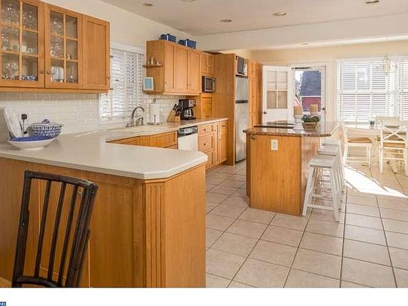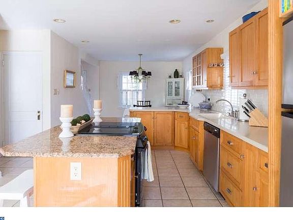 All the charm of Boro living in a home with modern updates. Beautiful gourmet kitchen with island, jen-airre stove, granite and Wilsonart countertops, wood cabinets with tile flooring. Sunny breakfast room and dining rooms, 9ft ceiling great room with fireplace with a wood stove insert lead to den with built-in shelving. Master suite with full large bathroom, 2 additional bedrooms with full bathroom all hardwood flooring complete the second floor. Basement finished with plenty of storage room. One car detached garage, wood deck, shed in gardening area with fenced in back yard. This home is EZ Commute to Rt1, I95, Phila, NYC and Newtown.