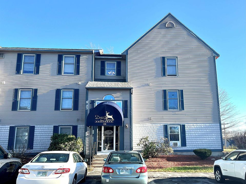 Clean 2 bedroom condo is ready for you to move right in and update it to make it your own. Open floor plan just off the kitchen features a living/dining room area with glass slider door leading to a private covered balcony. Fully appliance gala kitchen, 2 spacious bedrooms and full bath. New in wall AC unit. Laundry on the same floor. Each unit has assigned interior storage space. Condo fee includes landscaping, plowing, water and sewer Enjoy the amenities of an in ground pool, clubhouse, fitness center and plenty of parking.