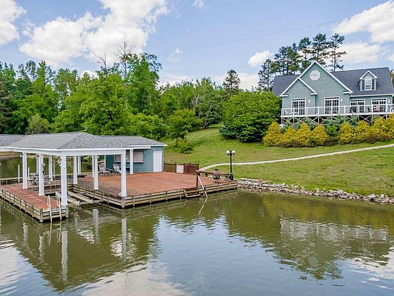 Waterfront retreat on the popular North side of Hyco Lake built for relaxation. Large main floor with a bright open great room, galley style kitchen w/ an abundance of rich cabinetry, master suite, bedroom/full bath, & laundry. Upper floor is great for entertaining w/ rec room, mini bar, theater room, & bed/bath for guests. Outside enjoy lovely lake views from your renovated wrap around deck, double boat slip w/ an over-sized sun deck & storage at the end of an inlet w/ wooded views across the water!