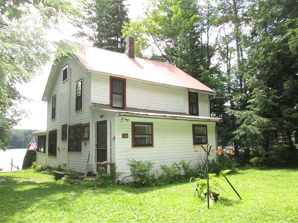 Directly located on the lake front of Mountain Lake. This seasonal home has everything you want for 3 season fun. Modern kitchen and newly updated bathroom are insulated, 1/2 bath off living room with stone fireplace with the stones used from the old Western Gateway bridge. Enclosed screen porch overlooks the lake with easy level access with dock and wooded area with outdoor fireplace. Four bedrooms on second floor. All newer aluminum windows. This is a must see on a spectacular Adirondack Spring fed Lake appx 32 acres and up to 49' deep with abundant wildlife. Mountain Lake used to be a recreational area for Gloversville resident via the railroad. The path around the lake still exists for walking only.