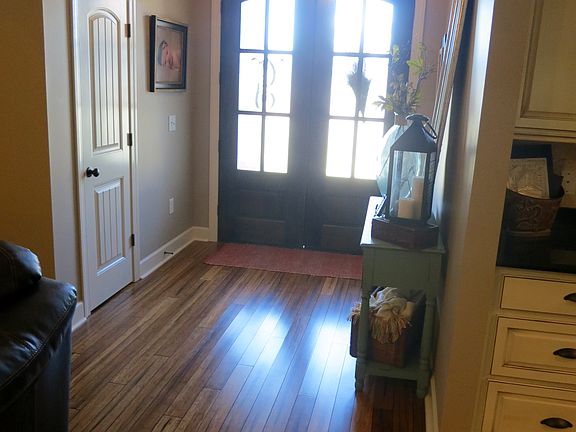 Lots of upgrades in this 3BR/2BA Custom 1 Owner Home!! Open layout split bedroom floorplan in quiet, popular Fox Trace Features include great curb appeal, granite countertops throughout, custom cabinets, very nice stainless appliances, large island in kitchen, walk-in tile shower with double showerheads in master, tankless gas water heater for endless showers, gas log fireplace, 10’ ceilings in living room, 8’ mahogany double front door, stranded bamboo hardwood floors in master and living area, 2-car garage that will fit a full size truck, large corner lot also has enough room for adding a detached garage, walk-in pantry, large laundry room with mud sink, custom blinds, attic storage, covered porch, grilling patio, low maintenance landscaping, fresh mulch, well insulated, low electric bills!