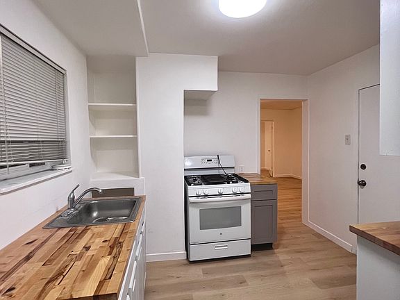 Modern cabinetsFresh paintNew laminated floorButcher block countertop