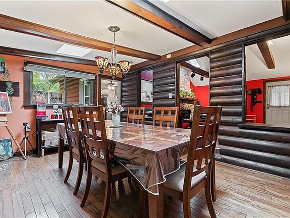 A piece of Penn Hills history is ready for you to move in! This extremely RARE and unique 3 bed, log cabin home brings the country feel into the city. Tucked back on 1/2 acre of ground it is located on one of the most beautiful streets in the area. This dwelling features a true log cabin style stone fireplace w/ vaulted ceilings and exposed beams in the living room. Tons of skylights throughout create natural light and a nature feel into the home. There is one and a half updated baths and all three bedrooms on the main level for one story living. Back patio off the kitchen great for grilling & entertaining! Enjoy the many home grown fruit plants which include blueberry and grapes along with a wall of a flowering gardenia for privacy. HUGE partially finished basement w/ laundry and space for lots of storage, game room or gym. Roof (2015); Furnace (2010); Electrical Panel (2010); bathrooms remodeled (2016). Close proximity to many stores and restaurants. A quick commute to the city!