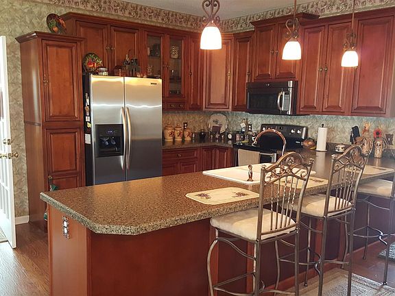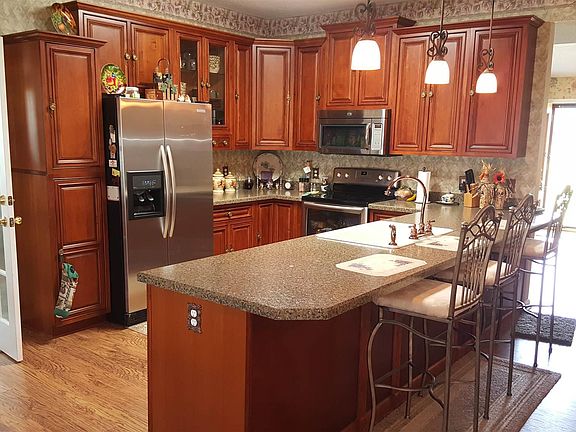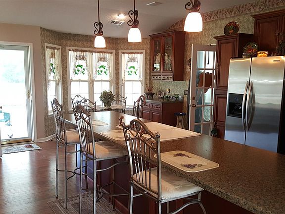 - RoomKitchenFeatures: Eat-in Kitchen, Bay Window, Counter Tops-Formica, Cabinets-Stained, Floors-Laminate