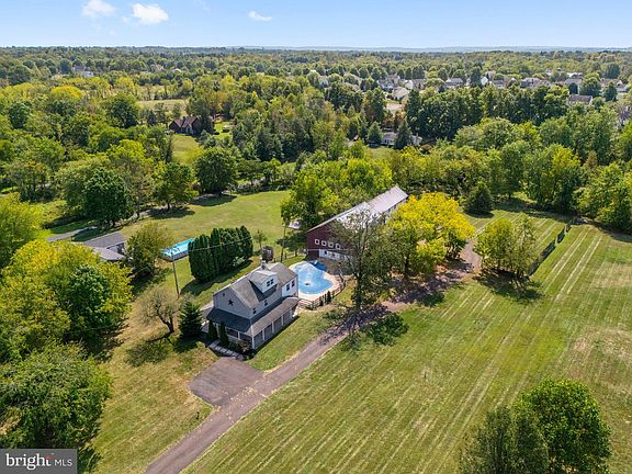 Imagine relaxing on your wrap-around porch, enjoying the peace and privacy of this stunning 2+ acre property. This beautiful 1800s farmhouse offers the perfect blend of classic charm and modern amenities, featuring an in-ground pool, a spacious barn with endless possibilities, a detached garage, and open pastureland. Step inside through the mudroom, complete with washer and dryer. The first floor welcomes you with a farmhouse-style kitchen, a cozy dining room, and a warm, inviting living room centered around a wood-burning fireplace insert. Hardwood floors shine under the natural light that streams through the large windows and doors. The second floor boasts two generously sized bedrooms with built-in shelves, large closets, and two full bathrooms. The third floor offers a versatile third bedroom, ideal for an office, lounge, or creative space. Outside, the pool and patio area are perfect for entertaining. The adjacent barn provides even more options, with space for a lounge or pool house, and a second-story workshop or garage accessed via a barn door. The barn also features two secluded rooms, previously used for storage and as a paint booth, offering additional flexibility. A separate two-story garage at the rear of the property includes a concrete floor, previously fitted with a mechanic’s lift, and ample storage space on the second level. With three outbuildings, each on separate electrical meters, this property offers endless potential for customization. Located in the award-winning Spring-Ford School District and just minutes from parks, shopping, and major highways, this unique property is a must-see! Don’t miss out—schedule your showing today!