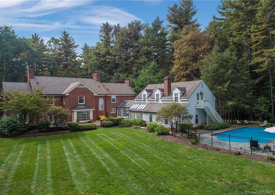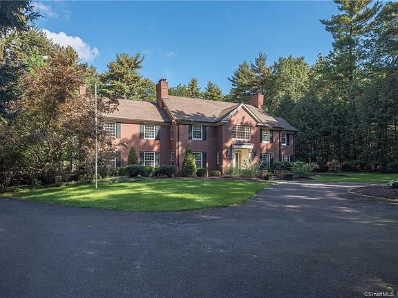 A picturesque tree lined drive gracefully leads to circular entrance of this incredible brick colonial on 2.5+ acrs of gorgeous,private grounds. Lush sweeping lawn,gunite pool,granite patio,& bluestone walks idyllically frame this distinctive home offering the peace & tranquility of a personal oasis & fabulous back drop for intimate gatherings or entertaining on a grander scale.Natural light flows into well appointed interior through walls of windows designed to take advantage of this special setting.Everyone will gravitate to the white Kit w/abundant cabinetry,oversized islnd,viking frdg,separate sub zero freezer,connecting FR w/frpl, & stunning skylit dng. Butlers pantry w/wet bar leads to the substantial DR & frpl LR w/french drs to expansive granite patio. Marble flr, frnch drs to patio, & exquisite windows highlight the study where working from home is a true joy. As the weather turns chilly grab a good book from the shelves of the library & relax by the cozy fire. Upstairs the primary suite is infused with the feeling of a fine hotel w/softly lit trey ceiling, gas log frpl, & spa bth.Three addtl nicely sized Bdrs,each w/baths & 1 w/frpl,share upper level along w/sunny laundry rm.The 5th BR is cottage style apt suite w/LR/DR, kit,& bth offering many options. Plenty of rm for fun & games in w/o LL w/rec rm & lg gym. Convenient location close to town, award winning schools, & 15 mins to Bradley. Trails from yard to Great Pond State Park. Estate like home in serene setting