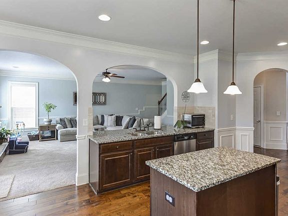 - RoomKitchenFeatures: Granite Counters, Pantry, Eat-in Kitchen, Floors-Hardwood, Cabinets-Stained, Bar, Backsplash-Tiled