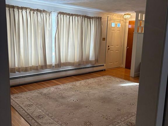 Charming, Recently Updated Home with Scenic Views and Convenient Location This beautifully updated home offers the perfect blend of comfort and nature, with fresh paint and a newly renovated kitchen featuring updated floors and newer appliances. The fully finished lower level, with its own fresh coat of paint and new flooring, provides ample living space for your family. Enjoy the convenience of a one-car garage, while the gas heating system with forced hot water ensures warmth and efficiency during the cooler months. The first-floor walk-in shower adds an extra touch of accessibility and modern design. Step outside to the back deck, where you can relax and take in the serene views of the conservation land that borders the property. Watch wildlife, including deer, or take a peaceful stroll on the nearby trails, right across the street. The home is also within walking distance to Estabrook Elementary School, making it an ideal location for families. Landscaping, including grass cutting, is included during the warmer months, while tenants are responsible for snow removal in the winter. Utilities, including gas and electric, are the tenant's responsibility. Due at signing of lease: First Months Rent Security Deposit 1 Months Rent Broker Fee