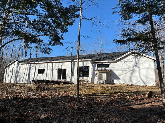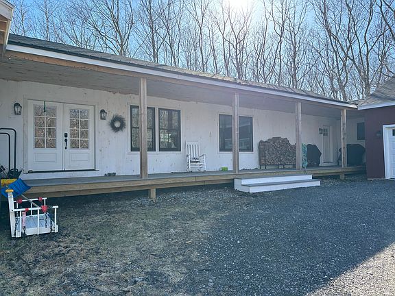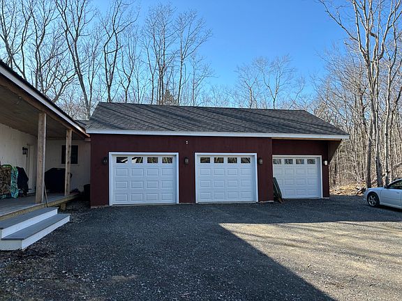 Private setting surrounded by woods and old stone walls. Recently constructed with poured concrete foundation. Spacious custom ranch with cathedral ceiling in living room and dining room. Living room has wood stove and sliders to deck in rear. Large fully applianced kitchen includes double wall ovens, center island, and huge walk-in pantry. Master bedroom with oversized walk-in closet and master bathroom (includes large bathtub and separate shower stall). Laundry room. Flooring is unfinished. Spray foam insulation throughout (exterior walls are 5 inches). Nice covered front porch. Three car attached garage with electric openers for insulated overhead doors. Propane gas tank for gas cooktop in kitchen (tank is owned and will convey with sale).