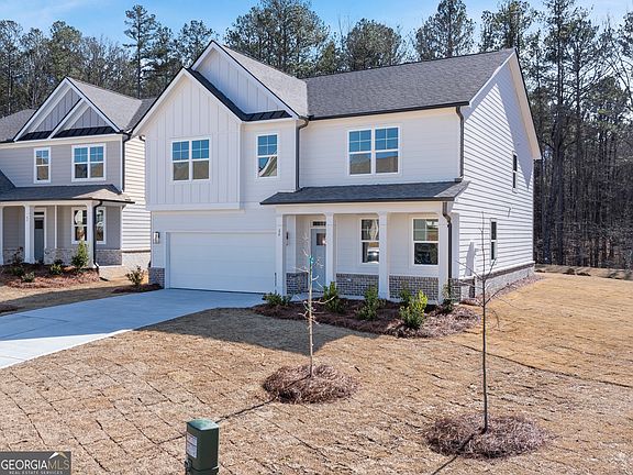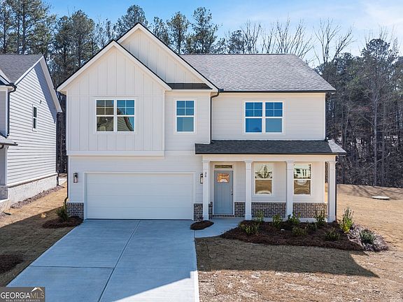Welcome to the beautiful 146 Hampton Terrace, one of our single-family homes in the new Hamptons at Riverwood South community in Dallas, GA. This two-story, Hanover plan offers 4 bedrooms, 2.5 bathrooms and a 2-car garage. As you enter this home, you'll walk down a long inviting foyer - the perfect space for a narrow hall table to drop the keys and mail or a gallery wall full of photos of family and friends. Before reaching the main living area, you'll pass an office space with double doors and a separate dining room. At the rear of the home you'll find the open-concept entertaining space comprised of a family room, dining area and kitchen The oversized family room will fit all of your furniture and the dining space allows for a table to gather around. In the kitchen you'll find quartz countertops, stainless-steel appliances and an expansive corner pantry. An open loft space sits at the top of the stairs, a blank canvas for your needs, whether it be a second living area, game room, reading space, or anything else you can dream up. The primary suite consists of a large bedroom, en-suite bathroom with a quartz double vanity, separate tub and walk-in shower, and a large walk-in closet. Three additional guest bedrooms, one full bathroom with double vanity and the laundry room round out the second floor. Call us today to schedule a tour of 146 Hampton Terrace, to make Hamptons at Riverwood South your new home.