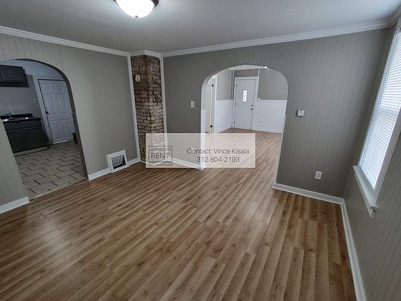 Nicely remodeled 2 bedroom home. No carpets, laminate and tile flooring throughout. 2 car detached garage. Freshly painted, large kitchen, and a laundry room with washer/dryer hookups. Basement is unfinished. 2 year lease, tenant pays all utilities and is responsible for lawn care, landscaping, and snow shoveling.
