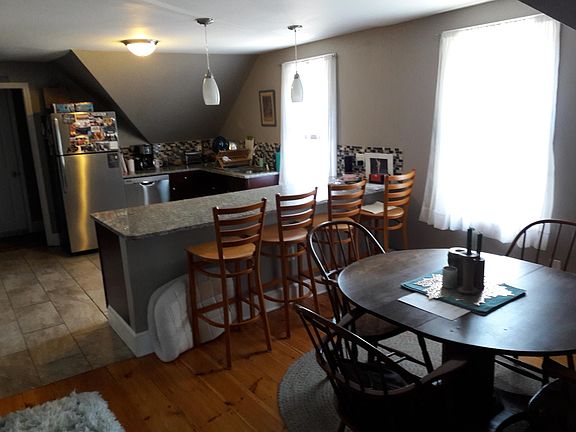 3rd floor modern apartment with 2 parking spots. Granite counters in kitchen with island open to dining room. Separate living room with seasonal partial water views. Large bathroom with in unit laundry (machines provided). 2 bedrooms, one of which would be great for a secluded, quiet office. Owner pays for sewer/water and snow plowing. Tenant pays for heat (on demand, high efficiency natural gas system), electric, TV/internet. No smoking. 2 parking spots are included, tandem style. No overnight parking on the street is allowed in the winter, by city policy.