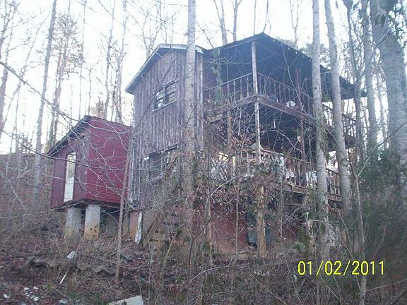 Desirable waterfront property. Two homes for one! Handy-man specials... Main house is a 2 bedroom, 1 bath, board and batten two story. The second home is a 12x24 log cabin featuring a loft bedroom. Both have all utilities and are fully livable. Also has a 16x26 wired garage. Lot is UNRESTRICTED .48 acres with over 100' of gently-sloping Caney Fork River frontage. Includes large floating boat dock! Bring your hammer and fishing pole!