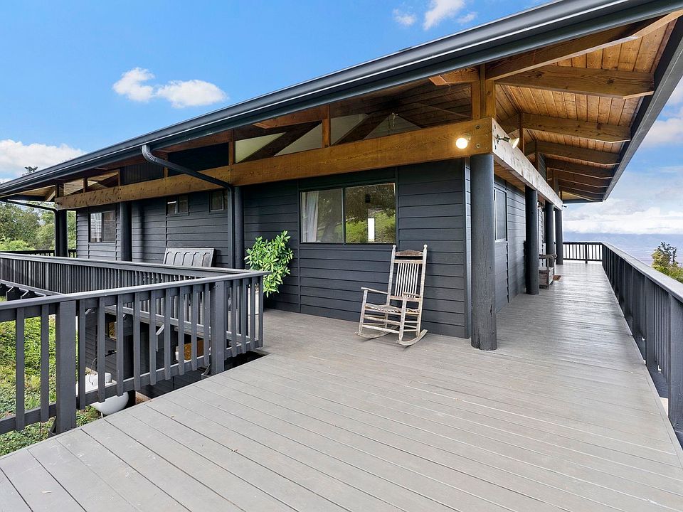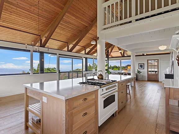 Embrace the bicoastal ocean views from this complete 2021 awe-inspiring remodel. Let the meandering steps lead you to the 1,100 sq ft of wrap around lanai & you'll enter the home and discover the stunning beams that create a canopy to this open floor plan. The European inspired kitchen features quartz countertops, custom cabinetry, a furniture style pantry, European range, and farmhouse sink. With the vast amount of windows to capture the natural art of jacarandas in bloom and they also welcome tropical ambiance into your home. The main floor includes the living room with gas fireplace, dining room, kitchen, 2 full bathrooms, primary bedroom & bath along with second bedroom. Spacious vaulted wood ceilings and custom built in cabinetry are included in each of the bedrooms. Creative space extends up the staircase to a large loft for another dream come true useful space. As you make your way down to the ground level, you will discover the mudroom/laundry area filled with custom cabinetry, new washer and dryer, farmhouse sink, marble countertops, and a herringbone tile floor. Easy access through the mudroom to the large 2 car garage and backyard. Two additional bedrooms are located on this ground floor along with a full bathroom. Pocket French doors lead you to a large family room / flex space to fit your lifestyle. Owned 20 Solar Photovoltaic panels included that will help reduce your electric bill! Additional noteworthy details: hot water on demand, storage shed, chicken coup, and no HOA! We would be honored to show you this stunning home.