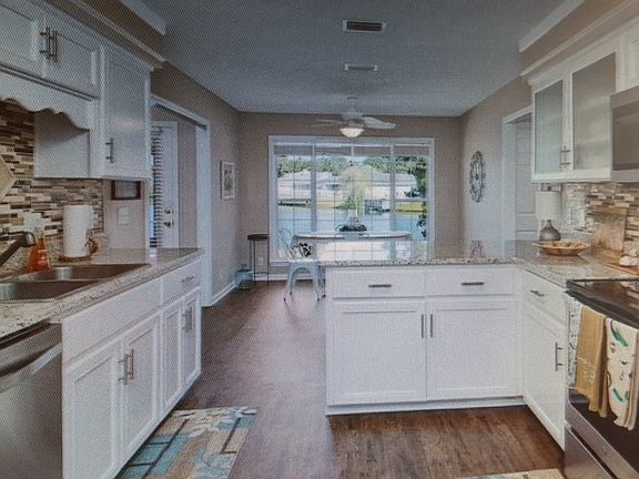 Completely renovated brick home sold just over 90 days ago,. Owner had to relocate unexpectedly and this pristine home is once again up for sale. Located in prime location near FLETC and convenient to shopping and restaurants. Has fenced yard, sprinkler system, screened porch and situated on a lot with best view of the lake. Everything is like new including flooring, appliances and granite countertops. Great Room has ten foot ceilings with dental crown molding and wood burning fireplace. Master bath features whirlpool tub with chandelier, separate shower, double vanity with framed mirrors and new marble countertops. This is a must see home!