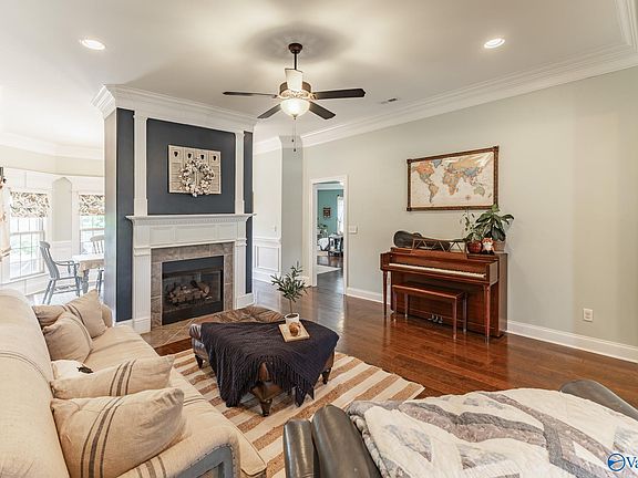 - Features: 10’ + Ceiling, Ceiling Fan(s), Crown Molding, Fireplace, Recessed Lighting, Smooth Ceiling, Wood Floor