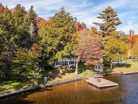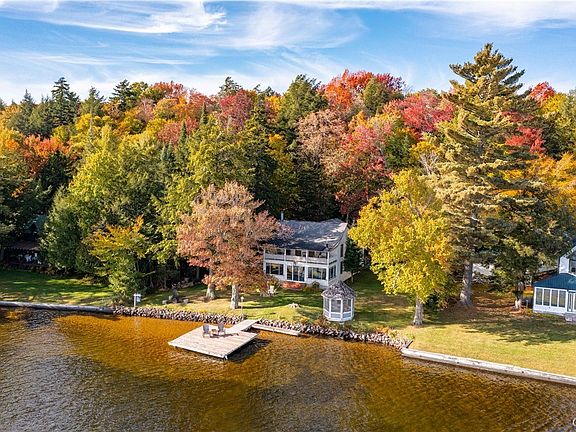 This Fourth Lake waterfront camp has so many wonderful features! The waterfront has a pristine, sandy bottom and a large dock to bask in the sun. The lawn is nice and level with a screened-in gazebo and an area for campfires. There is a spacious three-season room with amazing views and a propane woodstove. The eat-in kitchen has ample room for food preparation and adjoins a den and the formal dining room. Five bedrooms are located on the second story of this charming house, 2 of which lead out to an amazing balcony overlooking the lake. Located on a private, seasonal road just minutes from the villages of Eagle Bay and Inlet.