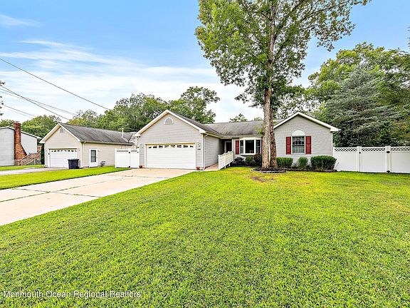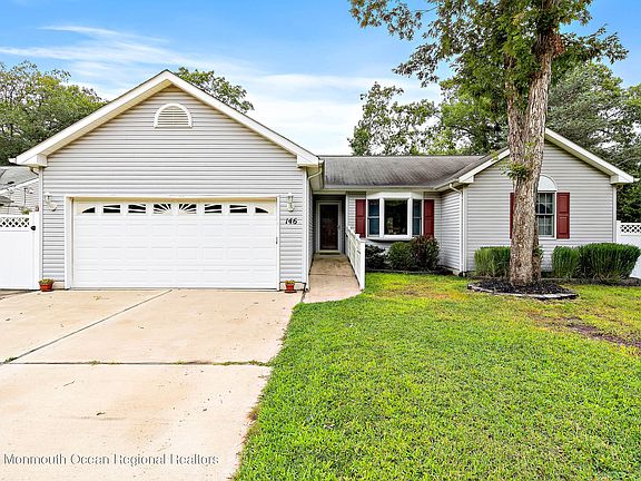Move right into this immaculate 3 bedroom 2 bath contemporary ranch located in desirable Ocean Acres, in NEW condition used only in summer. INGROUND pool with new liner and new cover. The split floor plan is ideal with two bedrooms and full bath, opposite from the primary bedroom. The oversized primary bedroom has a private bathroom with shower stall and large walk in closet. The living room features vaulted ceilings, complete with custom window treatments and sliding glass door leading out to pool and back yard. Formal dining area, eat in kitchen and additional family room. Spacious kitchen with kitchen appliance package. Cathedral ceilings in the living and dining rooms. Custom window treatments throughout. Large two car garage with automatic door, separate side entrance door and interi