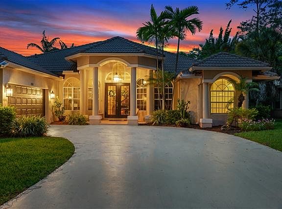 Come experience the magic of this beautiful home situated on a prime waterfront lot in the Estates of Royal Palm Bea. Incredibly located, this home offers gorgeous vistas of the reservoir and nature preserve offering glorious sunsets for you to bask in while swimming in your private oasis. If you have to stay at home- you might as well do it in style and enjoy your peaceful surroundings from the soothing waters of your heated raised spa or freeform pool. Dine under cover or under the stars. The choice is yours. When you step inside the home you will be embraced by the warmth that it offers. This 3 bedroom plus office home also has 3 full bathrooms which is difficult to find. House is great for entertaining with large kitchen overlooking family room as well as separate living room and 2020-08-04