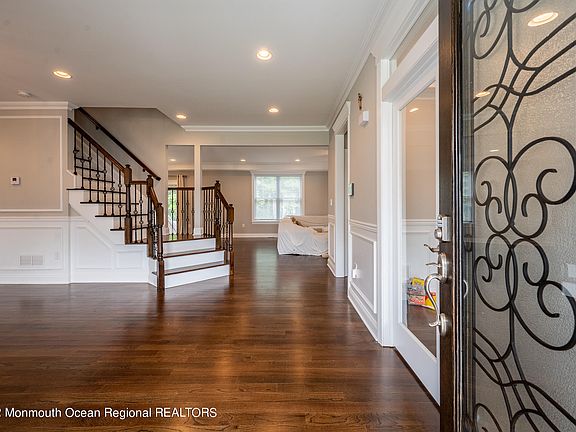 Located at the end of the cul-de-sac on a new street, this 5 Bed 3 ½ 3800+sqft has been meticulously maintained. Better than new, this home is loaded with upgrades from top to bottom. Entire 1st fl w/ 9ft ceilings show off HW flrs, custom woodwork and tons of recessed lighting. Gourmet w/white maple shaker cabinets, under cabinet lighting, SS appliances, granite counters, huge center island & large pantry. Dinette with dry bar leads to LR w/ gas FP. Enter through the etched French Doors to your home office that offers Coffered ceilings, recessed lighting and beautiful woodwork. Enormous MB has attached full bath incl, stand up shower, soaking tub & water closet along with a 10x22 WIC! 2nd fl also boasts 2 sets of bedrooms with Jack & Jill Baths along with large laundry room. Full basement with high ceilings has rough plumbing for future finishing. Quick closing possible if needed. Minutes to beaches & boardwalks along with GSP & mass transportation.