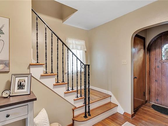 Old World Charm Meets Modern Amenities! Situated on a Table Top, Level Lot with It's Original Front Door, Architectural Brick/Stonework, Beautiful Wood Floors, Wainscot & Crown Molding, this Home has Wide Arched Doorways and a Spacious, Welcoming Entry for a Very Open Feel. You'll LOVE the Updated Kitchen w/White Cabinets, Newer Stainless Steel Appliances, New Vinyl Tile Floor, and Sleek Dark Laminate Counter Tops. The Kitchen is Open to the Dining Room with Extra Counter/Storage Area & Breakfast Bar in Between. Doors Open from the Kitchen & DiningRm to the Back Yard and a Wonderful Covered Side Porch for Easy Entertaining. Convenient Main Floor Pantry & Updated Half Bath, Coat Closest, and Door to Attached Garage. An Iron Railing Leads to 4 Bedrooms, an Updated Full Bath, and Lighted Cedar & Large Linen Closets on the Upper Level. HUGE Unfinished Basement for Future GameRoom, Plus a 13x8 Workshop Room and 11x4 Storage Room. Added AC 3 Yrs Ago, W/D 2 Yrs, New Garage Dr Coming!