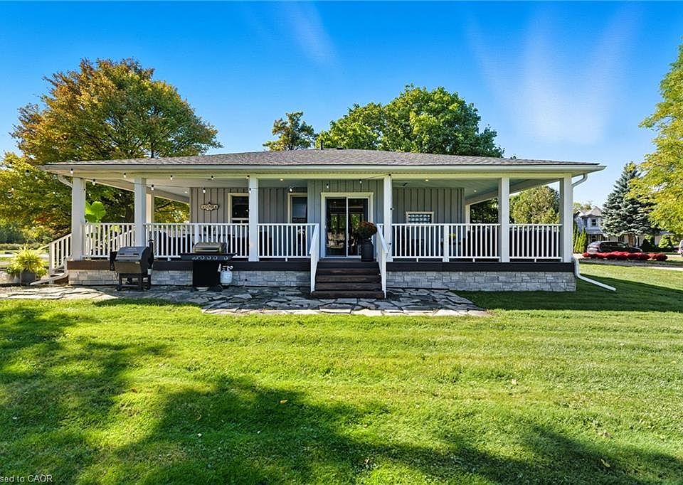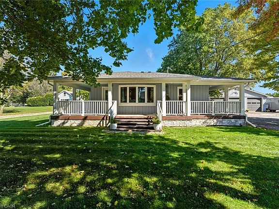 Discover this beautifully updated country bungalow with a detached 3-bay shop/garage, ideally located in the quaint West Flamborough village of Lynden. From the moment you arrive, the home’s curb appeal stands out with its board-and-batten exterior, welcoming wrap-around porch, and large driveway. Inside, the open-concept design connects the living, dining, and kitchen areas, creating a bright and functional main living space. The main floor also features two comfortable bedrooms and a modernized four-piece bathroom. The fully finished basement adds tremendous versatility. Currently arranged as a spacious primary suite with a three-piece ensuite and walk-in closet, it could easily be used as a recreation room, guest suite, or additional living space, offering flexibility to meet your family’s needs. Step outside to enjoy multiple covered outdoor living areas on the expansive wrap-around porch—perfect for relaxing or entertaining. The backyard includes a fully fenced dog run and, most impressively, a winterized three-bay shop. This exceptional garage features oversized 11’ x 12’ doors, 12’ ceilings, and the ability to comfortably fit up to six vehicles. Whether you’re a car enthusiast, hobbyist, or need space for RVs, trucks, or equipment, this shop delivers unmatched functionality. Renovations completed in 2019 include a new roof, wrap-around porch, updated flooring, plumbing, appliances, and a finished basement, along with construction of the shop. Lynden offers local amenities such as a library, parks, and the Lynden Legion, which hosts popular food and drink nights on weekends. With quick access to Cambridge, Brantford, Ancaster, Dundas, and Hamilton, this rural property combines peaceful living with excellent convenience. Don’t miss this opportunity to make it yours!