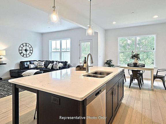 This roomy, two-story townhome features a one-car garage with mudroom entry, welcoming front porch, and open living areas with 9’ ceilings throughout the first floor. At the front of the home, just off the foyer, is the versatile flex room and a convenient powder room. An open concept kitchen, dining area, and large great room allow for a relaxed, open space feel that’s great for entertaining. The kitchen features quartz countertops and tile backsplash, heightened cabinetry with crown molding, and stainless steel appliances. On the second floor, the large owner’s suite includes a private bathroom and an expansive closet. The second floor also has a convenient laundry area, an additional 2 bedrooms and full bathroom.