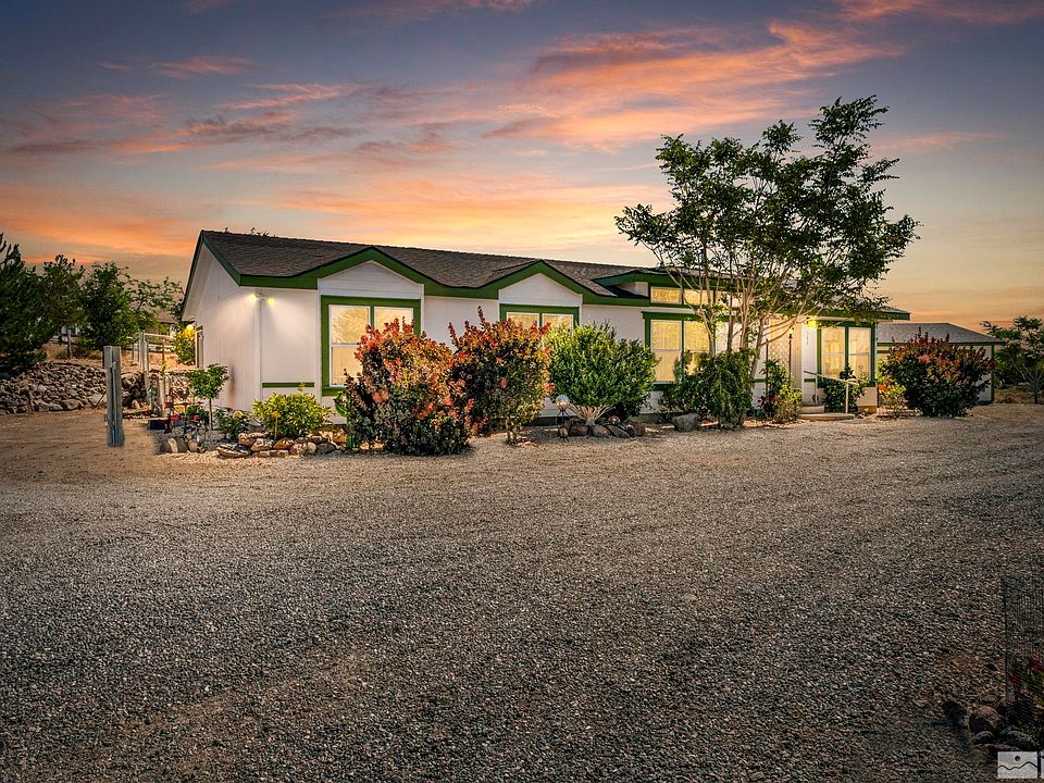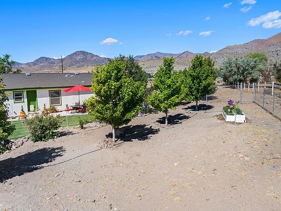 This home is beautiful ! Well taken care of and the grounds are meticulously maintained at 1593 sq. ft and located on 1.35 acres. Phenomenal views. This adorable home has 3 beds, 2 baths with a detached 2 car 676 sq ft garage and 168 sq ft storage/she shed. Fully fenced area off the back of the home with many fruit and shade trees. Back half of property untouched so bring your horses, build a barn workshop or whatever suits your dreams. Owners are willing to negotiate furniture with acceptable offer., pellet stove in the corner and lots of windows to bring in the warmth from the sun. The kitchen is also bright and cheery with tons of cabinet space, an island and breakfast nook, the dining room is right off the kitchen and living room with lots of windows and views. Down the hall from the living are the 3 bedrooms. The master bath has double sinks and a nice soak tub and lots of light from the 2 windows. All the rooms are bright and cheery. The back yard has a grassy area for the kids to play on and a nice shed to use as storage or an office or whatever you please. The back is fenced with fruit trees and a couple garden beds. This lovely property is waiting for you so call us today.
