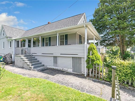 Well maintained Cape style home with a great wrap around covered porch and a spacious, well kept private fenced in yard with garden, inflatable above ground pool and plenty of level play area. This uniquely charming home layout has a walk in covered breezeway, a large updated family room with hardwood floors and beamed ceiling. Eat in kitchen, updated bath and two bedrooms on main level. Step down stairs lead to a third bedroom area. Walk up attic offers great storage space or possible room for expansion. Basement offers space for storage with walkout to side yard. Additionally this home offers a 2 car paved off street parking. Roof is new in 2019 and multiple thermo-pane windows installed in 2019. Newer 80 gallon hot water heater. The new homeowners will have beach rights to Stratford public beaches as well as parks and recreational facilities. City water and sewers. Gas is available in the street should the new homeowners wish to connect. Easy access to public transportation and I-95