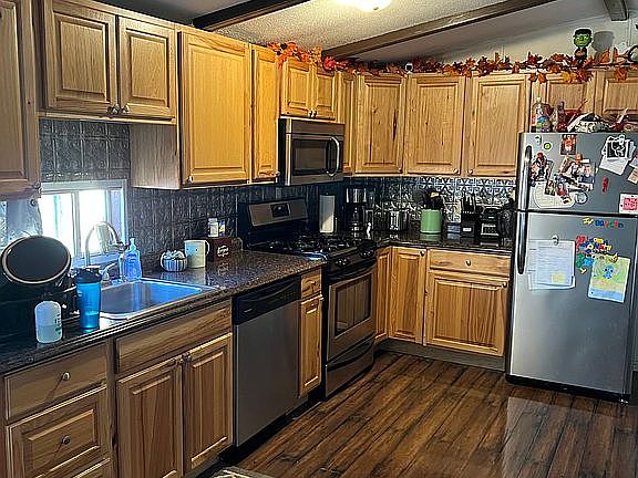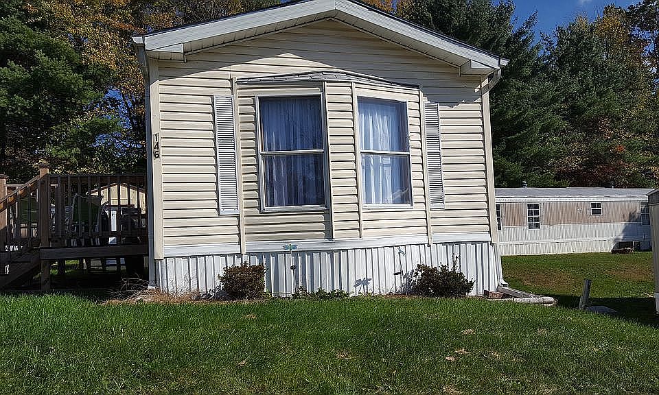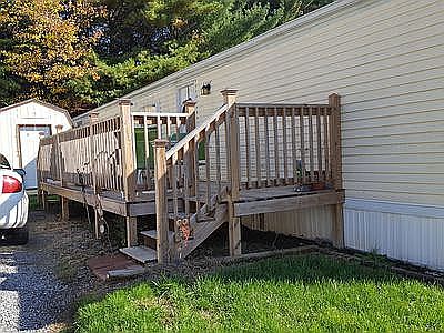 Could use some minor TLC. Laminate hardwood floor, ceramic tile bathroom, carpet, laundry room. Includes large front deck, shed with electric. Fenced in area for pets. All appliances included, Refrigerator, Stove, Dishwasher, Microwave, Washer/Dryer. Propane Heat. Located in well maintained park off Route 68. Close to local shopping. Lot rent is $355.00 includes garbage pickup. PLEASE TEXT/EMAIL WITH ANY QUESTIONS! Considering all cash offers. Thank you