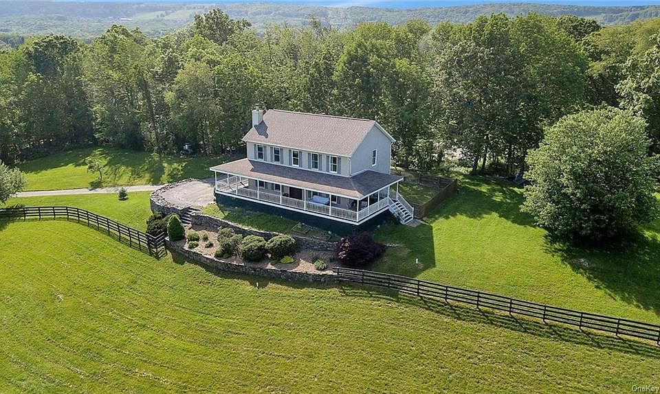 Luxury 4 bedroom, 2.5 bathroom Colonial situated on 23+ acre Horse Farm. This gorgeous home sits back off the road, looking down on 2 large, fenced and manicured pastures. The views from the wrap around porch don't disappoint from any direction. Stepping inside, to the right, you will find a library, with custom built in shelves, an electric fireplace and gorgeous french doors. To the left, you will find a spacious family room with a wood burning fireplace and Bluestone hearth and mantel. You will also find a full wet bar before entering into a fantastic kitchen and formal dining room. Concrete counters, Jenn Air appliances, custom stone farmhouse sink, spice cabinet and cabinet with charging station. Upstairs is a master bedroom with a custom en-suite. Reclaimed barnwood cabinets, hand hammered copper sinks, radiant heating in the floors and shower and an amazing Neorest toilet. There are 2 horse barns, 200x90 professional arena with seating & lights and plenty of trails to ride!
