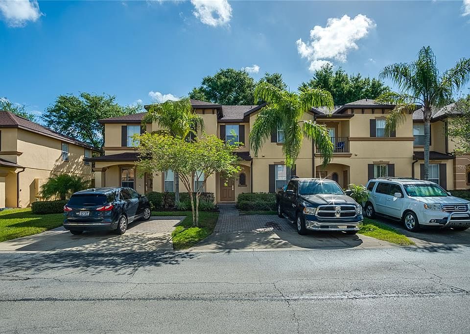 Welcome to resort-style living at this 4 bedroom, 3 bath townhome in the beautiful community of Regal Palms in Davenport. The minute you open the front door the ambiance will capture you with this open, airy, bright floor plan designed with the perfect touches for leisure and relaxation. The living room and dining room combo are perfect for the whole family to enjoy watching television, reading, or lounging with a glass of wine. The U- shaped kitchen has plenty of counter and cabinet space for preparing your favorite dinners for family and friends. The kitchen features granite countertops and all stainless steel appliances. This home features two primary-style bedrooms that include en suite bathrooms. The primary bedroom is downstairs and includes a walk-in closet and an en suite bathroom. Upstairs you will find a second primary bedroom with an ensuite bathroom and additional bedrooms with a full bath. The bathrooms also feature granite countertops. As you make your way to the exterior you can observe the patio. Enjoy your morning coffee on the peaceful rear patio or visit the wonderful community pool and clubhouse to relax by the pool, meet neighbors or enjoy a cocktail and food in the lovely recently refurbished restaurant. Enjoy lounging by the poolside tiki bar or relaxing by the large heated pool. You and the family will enjoy floating down the lazy river and waterfall or sitting in the hot tub and enjoying the relaxing waters. This community also offers a fitness center and sand volleyball courts, a jacuzzi, an indoor sauna and steam room, and an outdoor and indoor playground. HOA fee includes outside house maintenance and painting, roof maintenance and replacement, grounds maintenance, trash removal, cable, phone, pest control, 24-hour manned security gate, and use of the resort pools and facilities for the owner. Regal Palms is a well-known resort located close to a Publix supermarket and a wide variety of shops and restaurants. Very close to the Disney parks and in easy reach of all Central Florida parks, attractions, and shopping malls. Orlando international airport is just 35 minutes away and the Gulf and Atlantic coasts can each be reached in just 90 minutes. Do not miss the opportunity to live in resort style in true Florida style!