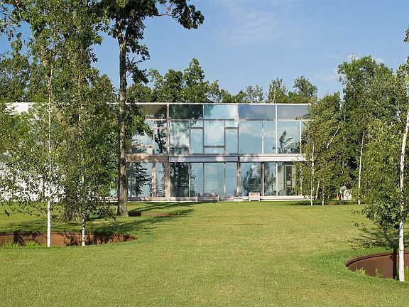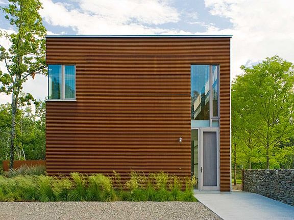 The design of this home alternates between intimately proportioned living spaces and spaces that soar. Daylight inhabits Hudson Valley Modern like a beloved family member, entering through walls of glass. Polycarbonate sheeting on sections of the west-facing floor-to-ceiling windows creates artistry with the silhouettes of trees and the passing shapes of clouds. In the common great room, one entire section of window-wall opens up fully to create effortless flow between indoors and outdoors. The kitchen is masterfully appointed with zinc-clad refrigerator, 6-burner chef's stove, double oven, twin dishwashers, and soapstone countertops and backsplashes. Just as the endless windows and lofty spaces invite the sky, the poured concrete floors, Douglas fir walls, and mahogany-clad windows connect the house to the earth. The western views of Catskills remind you that the land is ancient. The steel framed house inhabiting the landscape is a reminder that the new seamlessly cohabits with the old. On the western edge of the lawn, a 75' heated pool and separate children's pool overlook the entire valley. Trees in individually-lit steel rimmed wells create a feeling of elemental magic. Set on 110 acres stitched with immaculately maintained hiking and biking trails, this 6-bedroom house is a profoundly private escape that connects its inhabitants to the serenity and majesty of nature while sheltering them in beautiful spaces, from the loft-library to the hidden cube-room/office tucked away behind moving walls. The warmth of wood and ancient stone, the grandeur of glass and steel, the visionary beauty of endless Hudson Valley views. All this and more combine to take your breath away when you step into the elemental world of Hudson Valley Modern. 24 hour notice required for accompanied showings.