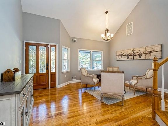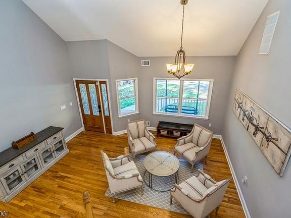 Custom built one owner home! 1st time offered for sale. Dramatic floor plan boasting souring ceilings, hardwood flooring, floor to ceiling windows. Formal living rm leads to light and open kitchen that joins the family room with wood burning fireplace and dining room with plenty of natural daylight capturing woodland views through floor to ceiling windows. First floor master bedroom suite, second bedroom, powder room and laundry room complete the main living level that offers radiant heat flooring. Second level offers two spacious bedrooms with a jack and jill full bath. Finished basement with game room and separate theater room. Charming front covered wrap around porch. Paver patio with firepit overlooking the scenic landscape of total privacy of this five acre property! Oversized two car heated garage with 10ft ceiling and additional 2nd floor storage area. Additional parking pad 20x30 for guest cottage or additional garage. Minutes to hiking/biking trails along the path and fish at nearby Raritan River. Visit several area golf courses and state parks. Visit charming downtown Califon with restaurants and shops. Quick access to major rt 78 and NJ transit.