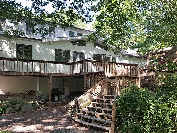 Magical 3.39 acre setting, with a meandering stream, for this stunning, stone faced Dutch Colonial home. Boasting over 4,000 sq ft, this home has so much to offer, including: 1 car attached garage, detached 2 car garage, 4 bedrooms,1 on the 1st floor, potential in-law suite in the lower level with full kitchen, living room, and bathroom, 3 1/2 bathrooms, formal living room with a full wall of gorgeous stone surround for the wood burning fireplace, formal dining room with charming wood trim, huge main eat-in kitchen, family room with wood cathedral ceilings and wood stove with brick surround, master bedroom houses the 3rd fireplace and has it's own full bathroom.