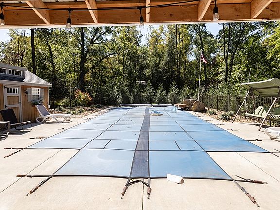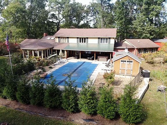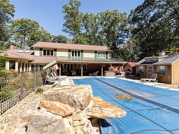 Do not miss this opportunity! Located on a 2.99 wooded lot in Hopwood, you have got to see this 5 bedroom, 3.5 bath home to appreciate what is available. Walk through the foyer to a large dining room/formal living room. From there you will find a spacious kitchen with stainless steel appliances & plenty of counter space. Moving on you can find yourself relaxing in the sunroom, or the large living room. On the other side of the main level you will find an office space leading to the primary bedroom with large full bath, walk in closets, and a large stand alone makeup vanity. Moving upstairs you will find 4 bedrooms, 1 including a full bath, as well as another full bath in the hallway. The interior of the home is topped off by a finished basement, setup as a theater space. On the exterior of the home find a fenced in yard with heated salt water pool, covered patio with hot tub, & stone pizza oven. Also included is a newly installed shed feature heating & ac. You don't want to miss this!