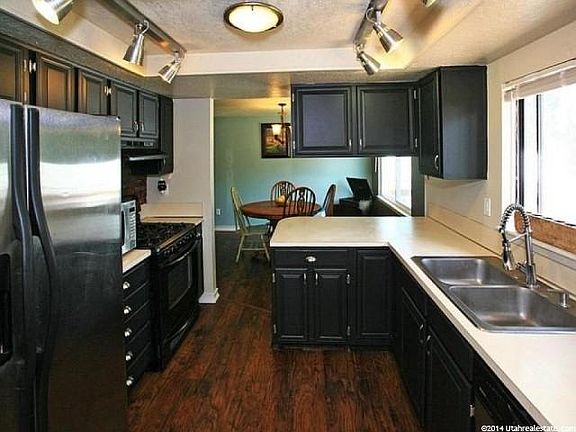 BEAUTIFUL HOME WITH FABULOUS LAYOUT! This home was recently updated! This well designed home maximizes space and features a gorgeous kitchen. It comes with additional storage space in basement and shed, an extra large walk-in shower, and cozy wood stove. Outside you'll enjoy mature landscaping and fenced yard. The large wood deck and concrete pad provide lots of space for a BBQ with a large crowd. You'll find plenty of room for toys, RV's or extra vehicles on the extra wide/ extra deep driveway. The lovely covered front porch great for enjoying any season. Enjoy mountain and valley views from Santaquin's lovely north side. MOVE-IN READY!