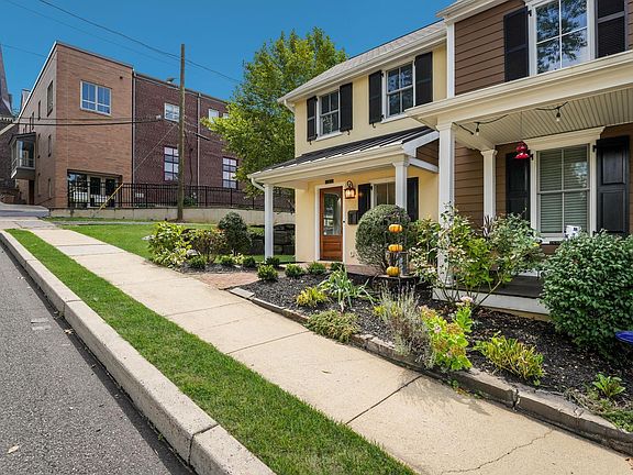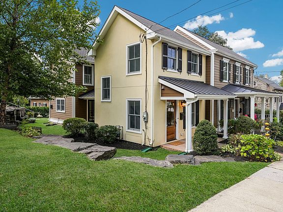 Welcome to this beautifully expanded and remodeled 1856 Borough twin, completely rebuilt in 2018 and offering the best of historic charm and modern convenience. Featuring an open floor plan and a premium in-town location, this 2-bedroom, 2.5-bath home shines with hardwood flooring throughout and abundant natural light. The inviting living and dining area showcases a Mercer Tile gas fireplace, while the updated kitchen boasts stainless steel appliances, a farmhouse sink, and direct access to a rear slate patio overlooking the landscaped yard with stone retaining wall—an ideal spot for morning coffee or evening relaxation. Upstairs, you’ll find two bedrooms, a full hall bath with neutral finishes, and a convenient second-floor laundry. The spacious primary suite offers a vaulted ceiling, walk-in closet, and ensuite bath with dual vanity and walk-in shower. Completing the package, this home includes a private driveway and rear parking—rare for Borough living. All this just steps from shops, dining, and cultural attractions.