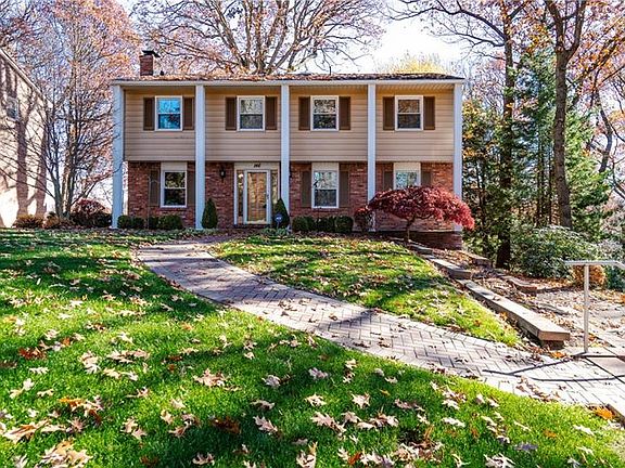 First time ever on the market is this wonderfully kept home in the Wyngate plan of Moon Twp. The Westminster a stately colonial home designed by James A. West the original builder features large rooms, open floor plan & a mature yard. Entering the home you're welcomed by warm hardwood floors as sunlight streams from many windows and glistens on the beautiful oak flooring. Move your way into the updated spacious eat-in kitchen with newer cabinets, flooring, countertops & more. Just off the kitchen features a family room where you can relax & warm yourself by the masonry fireplace. Looking to entertain, the large dining room is adjacent to the massive living room where guests can relax after a gourmet meal. The second floor features a master bedroom & bath plus 4 spacious bedrooms and main bath. The unfinished basement is a walkout style leading to the wooded rear yard and large shed. The community features the Wyngate swim club pool nearby where family memberships can be purchased