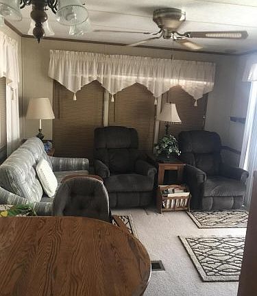 Come check out this great mobile home with a wonderful layout and tons of storage. The addition to the trailer allows for two separate storage areas with one being a laundry room This 12x36 mobile home has been taken well care of, with an open concept . Stay cool in the warm months with the AC system. . Park Place East is a friendly 55+ community featuring heated pool and spa, clubhouse, pickleball, dog park, billiards, and many more activities.