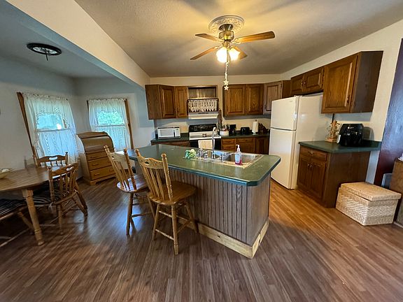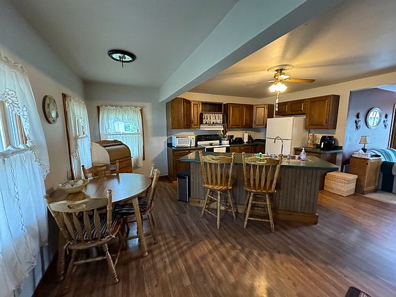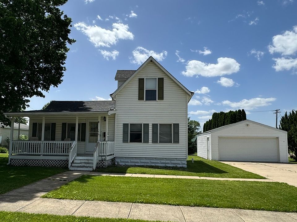 A charming two-story home on a nice corner lot boats a front covered porch for you as you walk into the home. Features a circle drive, 3 bedrooms, 2 bathrooms, and a two car detached garage. Kitchen is equipped with appliances, including a stove and dishwasher and 2 bar stools at counter for making meal preparation a breeze. Central air conditioning and heating ensure year-round comfort, while a washer and dryer conveniently tucked away in a utility area take care of laundry needs. The inviting living room welcomes you in, with space for relaxation and entertainment. Outside, a back deck provides the perfect setting for outdoors. This delightful home is move in ready! Call today for a showing. **Contingent upon seller finding a home of her choice**