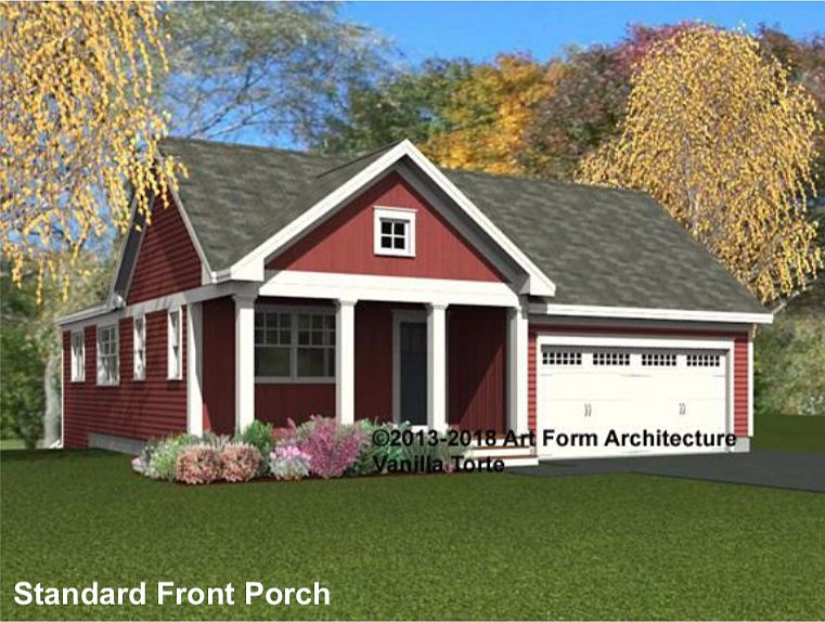 The most compact floor plan offering, the Vanilla Torte, offers 1,280 square feet of living space including 2 bedrooms, 2 bathrooms, and a 2-car garage, but offers maximum flexibility. Enter through the covered front porch and be greeted by the sweeping open concept living/dining/kitchen with hardwood flooring. The spacious master bedroom is located in the back of the home and features a walk-in closet and en-suite bath with linen closet. Laundry is conveniently located near the master bedroom, and another full bath and bedroom round out the space. Utilize the full unfinished basement for storage space, and add a back deck or patio for outdoor space.