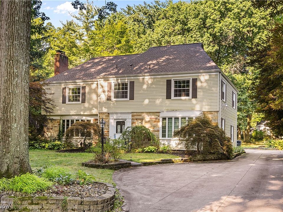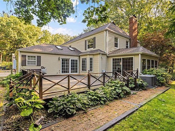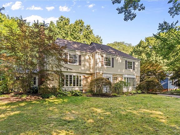 Welcome to 146 N Revere, a gorgeous center hall Colonial combining exquisite classic features with modern updates. Overlooking the 9th hole at Fairlawn Country Club, the wooded lot offers a secluded feel and a sprawling backyard. Beautifully refinished hardwood floors stretch throughout the property including all bedrooms. The massive Eat in Kitchen enjoys vaulted ceilings, center island, and extensive cabinetry. An abundance of countertop space & storage! Laundry room and half bath are next to eating area offering convenience & function & the sliding doors lead out to an expansive back deck. The Living room is immense and features wood burning fireplace and massive windows that fill the room with natural light. The adjacent formal Dining room enjoys large bay window and The French glass doors lead out to a breathtaking sunroom with great views of backyard. Beautiful original molding adorns the thresholds between the rooms. A classically styled study/office complete with wall of built in bookshelves and another half bath finish off the first floor. The second level brings four very large bedrooms all with very large accompanying closets. The master bedroom is absolutely huge and has a nicely updated full bathroom attached. Another completely updated full bath and hall cedar closet complete the second level. Recreation room in lower level is large enough to accommodate a wide variety of uses and also boasts a fireplace and wet bar. Property has seen a number of recent updates and roof appears almost new. Updates include: New washing machine '21, AT&T Fiber Optic 5 gig Internet Connection w/ WIFI '22, All hardwood professionally refinished '22, Leaf Filter Gutter Leaf Guards on all gutters '22, dishwasher '22, refrigerator '23, Sump pump '23, Master bath shower '24, new electric panel. On the doorstep of the best area restaurants, shopping, and Cuyahoga Valley metro parks - Don't miss your chance to tour this unique home!