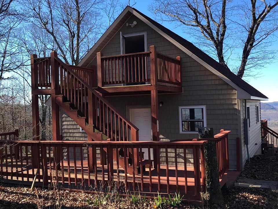 Spectacular view! Sit on the deck and watch the most beautiful sunrises and sunsets. Quaint cabin with some finishing touches will be a wonderful home or getaway for someone. Large decks on both the front and back of the cabin, well built with 6 inch wall and insulated windows. There is rural water on the property and some plumbing has been done but the water has not been ran into the house. There is no heat or cooling sources so square footage numbers are not heated and cooled square footage. All numbers are approximate, square footage per assessor.