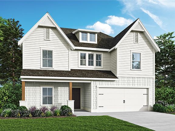 This stunning white exterior home is now on the market! This floor plan, the Spruce, is one of Harris Doyle Homes' most popular plans in the new sought after community, The Nest at Mimms Trail! This home has an estimated completion date of late March-early April. Beautiful quartz counter tops in the kitchen and bathrooms, stainless appliances, built-ins in the loft, and irrigation are just some of the options that have been chosen for this gorgeous home!